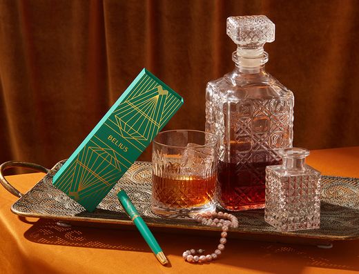 Pluma belius soiree aluminio color art deco turquesa y dorado tinta azul caja de diseño