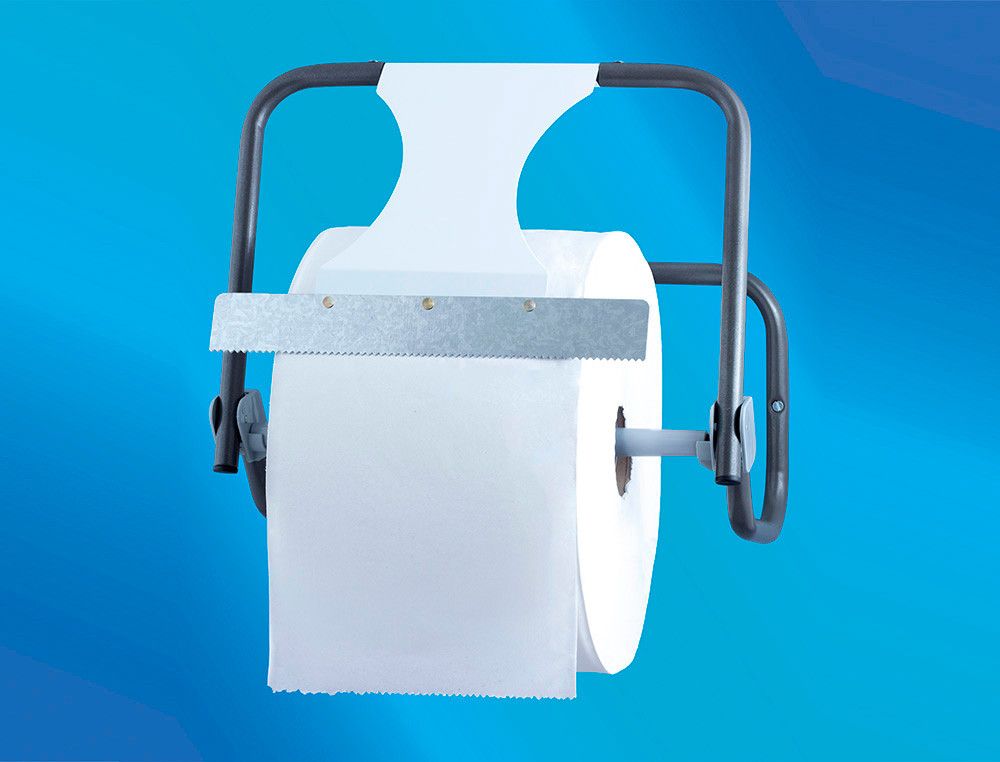 El portabobina industrial Jofel es un dispensador mural robusto fabricado en acero y diseńado para bobinas de hasta 500 m. Con una sierra metálica integrada, permite un corte preciso y fácil, optimizando así el tiempo de trabajo en entornos industriales. | Referencia Deskidea: 161936