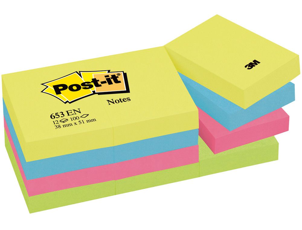 POST-IT Notas adhesivas Gama Energia Pack 12 blocs 100h Colores surtidos 38x51mm