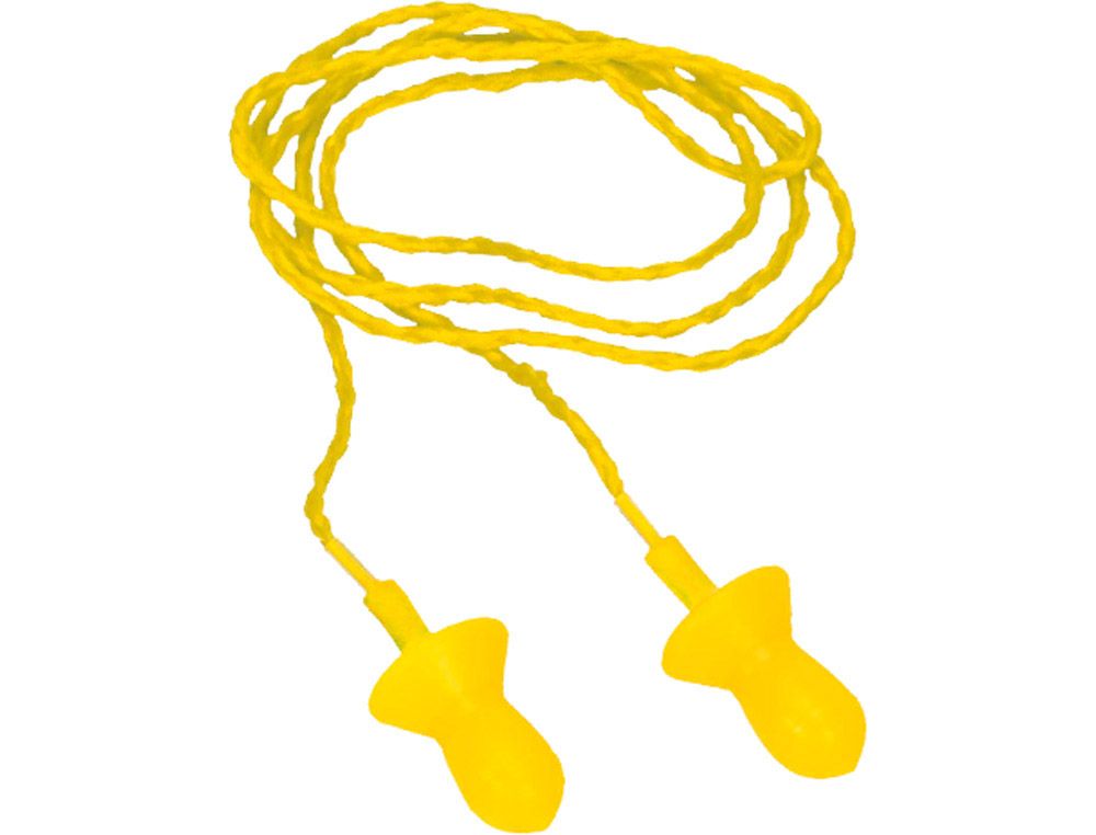 Tapones auditivos reutilizables de silicona con cordón textil. Utilizablescon o sin cordón. Blister de 10 pares (9 pares + 1 par en caja de almacen amiento). | Referencia Deskidea: 174910