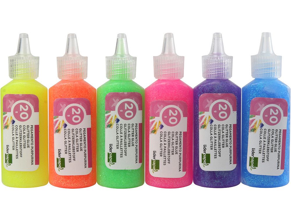 Purpurina Pegamento Liderpapel Fantasia Colores Metalicos Pasteles Bote de 20 Gr