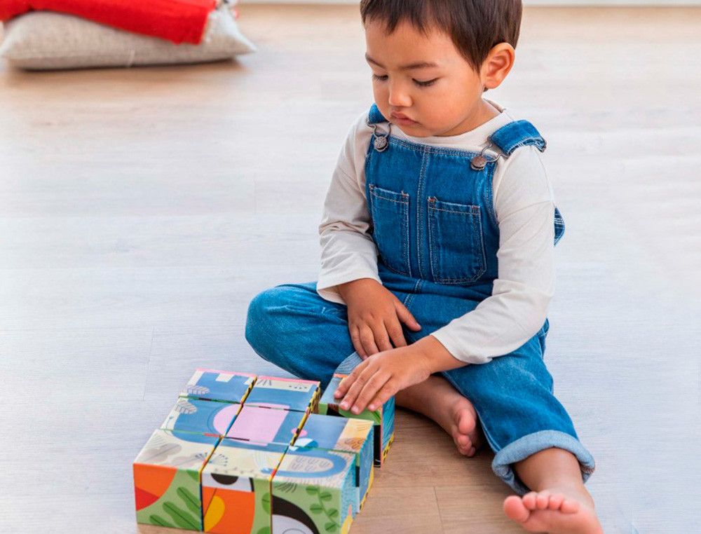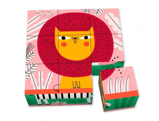 Puzle goula cubos de carton animales selva 6 escenas diferentes 9 piezas