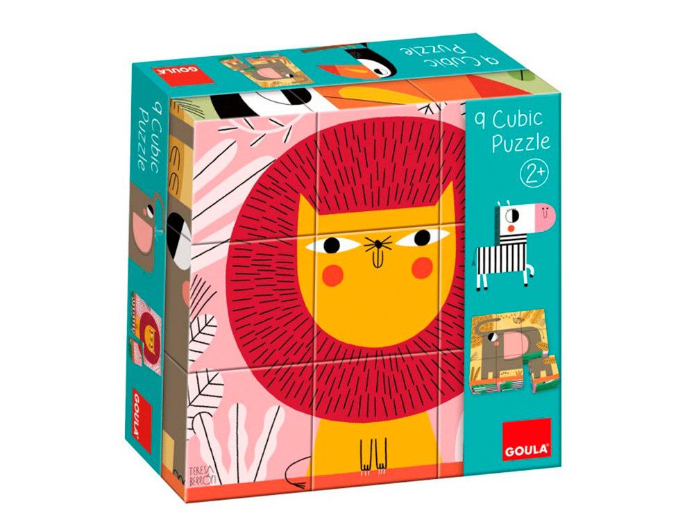 ˇDescubre la diversión en cada bloque! Este puzle cúbico Goula de animales de la selva consiste en 9 cubos ilustrados con leones, cebras y más. Con colores vibrantes y una guía en la caja, los nińos aprenderán y jugarán mientras desarrollan sus habilidades. | Referencia Deskidea: 163788