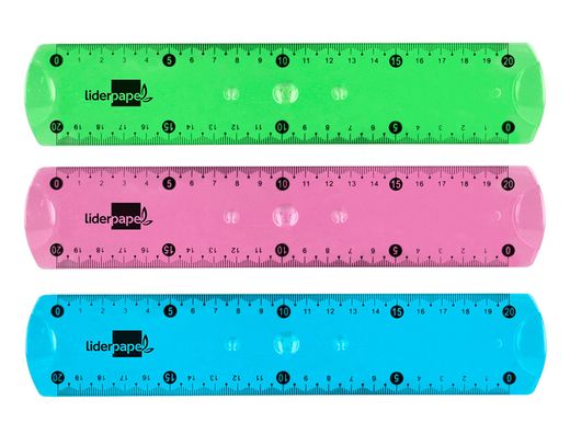 La regla de plástico flexible de 20 cm es perfecta para tus proyectos. Hecha de material transparente y resistente, no se quiebra. Disponible en colores vibrantes: azul, rosa y verde, ideal para agregar un toque divertido a tu escritorio. | Referencia Deskidea: 169693