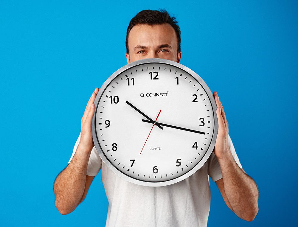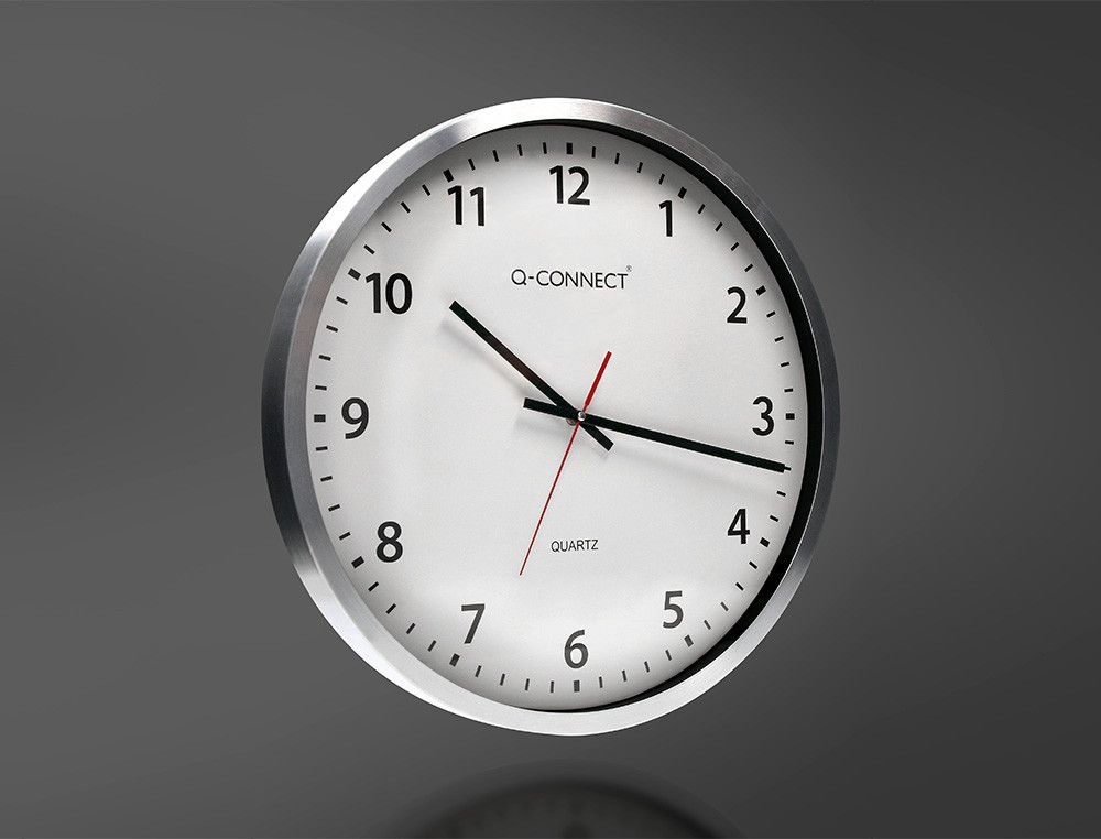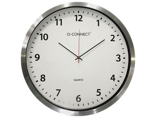Descubre el Reloj q-connect de pared, un accesorio elegante y funcional con un diseńo redondo y marco cromado. Con números grandes sobre un fondo blanco, garantiza una lectura clara en cualquier espacio. Perfecto para oficinas y salas grandes. Diámetro: 50 cm. | Referencia Deskidea: 153909