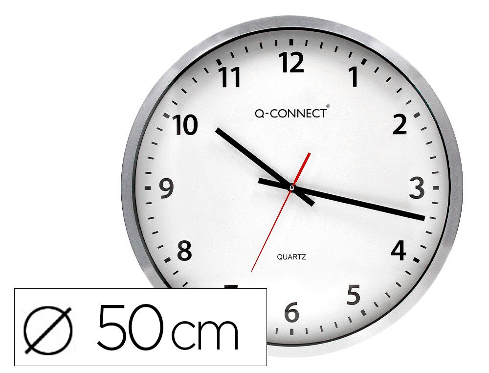 Reloj q-connect de pared plastico oficina redondo 50 cm marco cromado