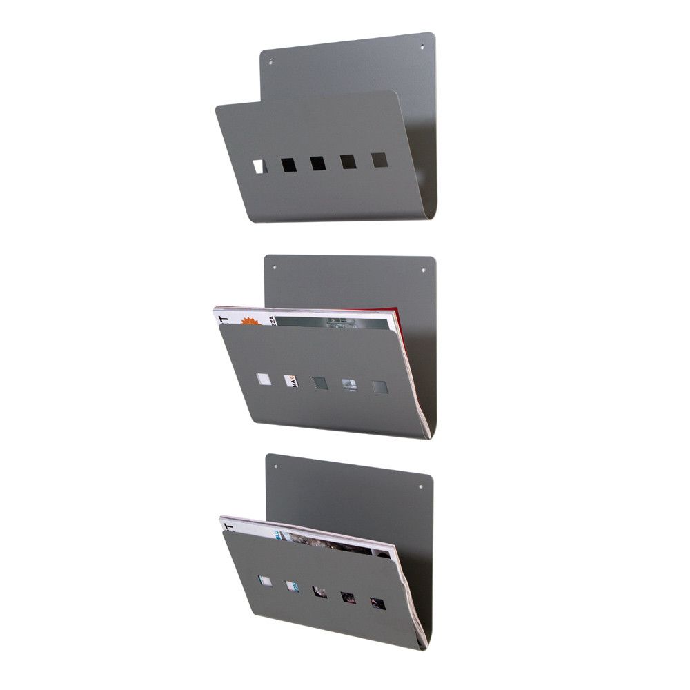 Transforma tu espacio con el Revistero de Pared Metálico. Confeccionado en acero resistente, este práctico conjunto de 3 unidades es ideal para organizar revistas y documentos. Ahorra espacio y añade estilo a tus paredes al mismo tiempo. | Referencia Deskidea: RCD2980