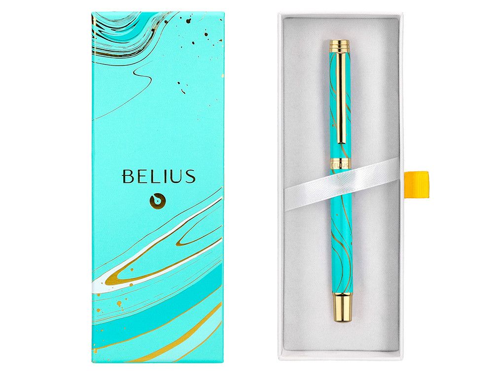 Roller belius aqua aluminio color turquesa y dorado tinta negra caja de diseño