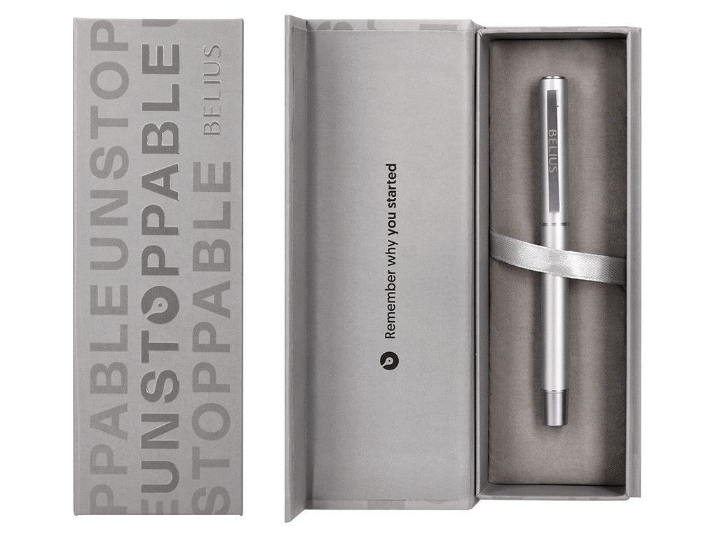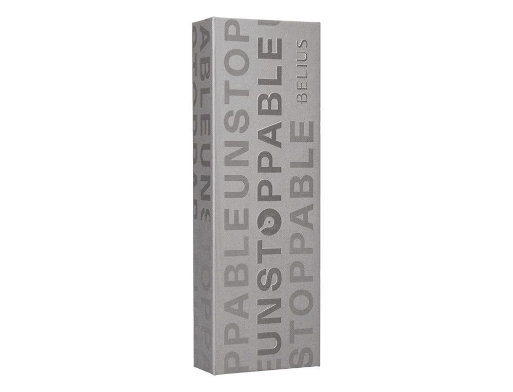 Roller belius unstoppable color plateado tinta negra caja de diseño