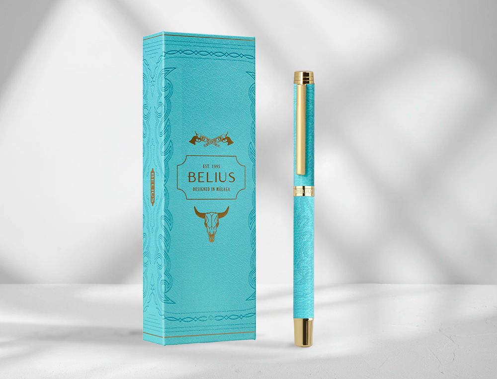 Roller belius wild west aluminio color turquesa dorado tinta color negro caja de diseńo