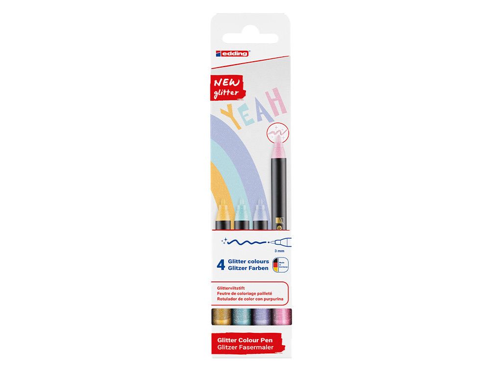 Rotulador edding punta fibra 1200 punta redonda 0,5 mm glitter pastel caja de 4 unidades colores surtidos