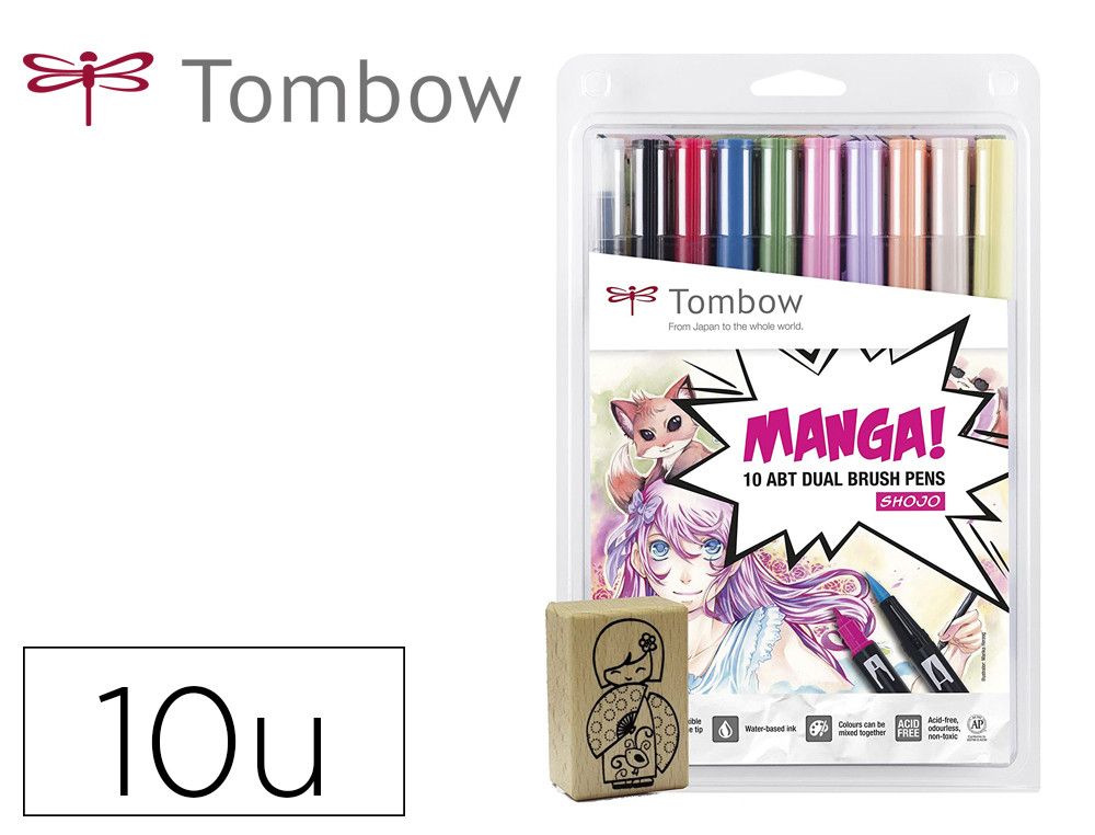 Rotulador tombow dual brush doble punta pincel manga shojo estuche de 10 unidades colores surtidos