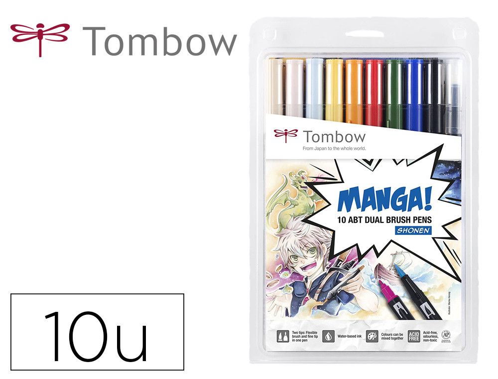 Rotulador tombow dual brush doble punta pincel manga shonen estuche de 10 unidades colores surtidos