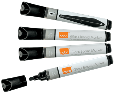 Rotuladores NOBO pizarra CRISTAL, negro (pack de 4 unidades)