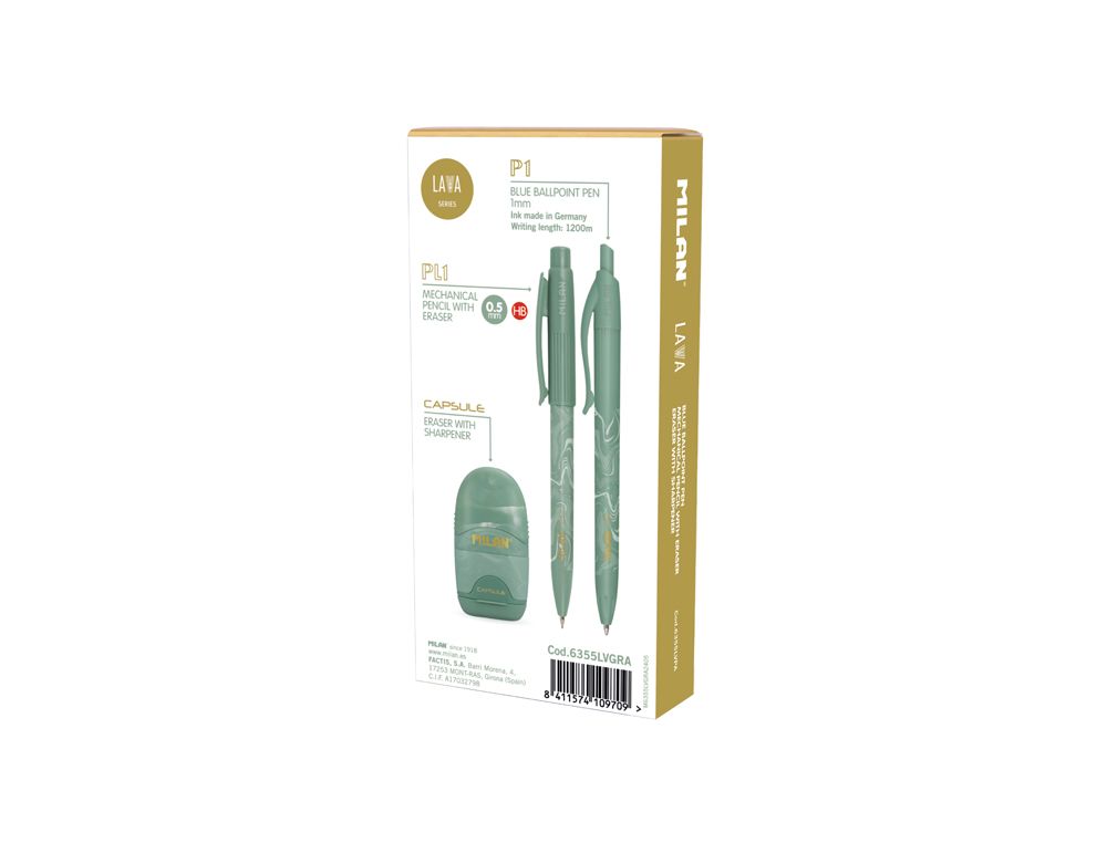 Set escritura milan serie lava boligrafo p1 + portaminas pl1 0,5 mm + afilalapiz con goma capsule