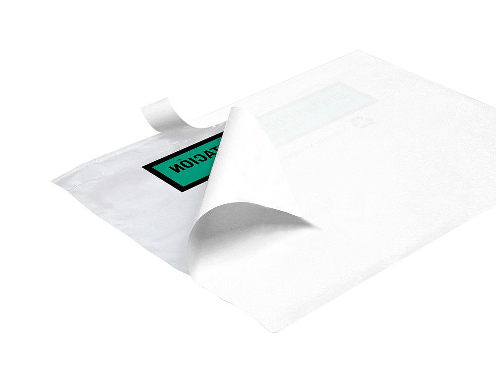 Sobre autoadhesivo q-connect portadocumentos multilingue 240x180 mm sin ventana 100% papel paquete de 100 unidades