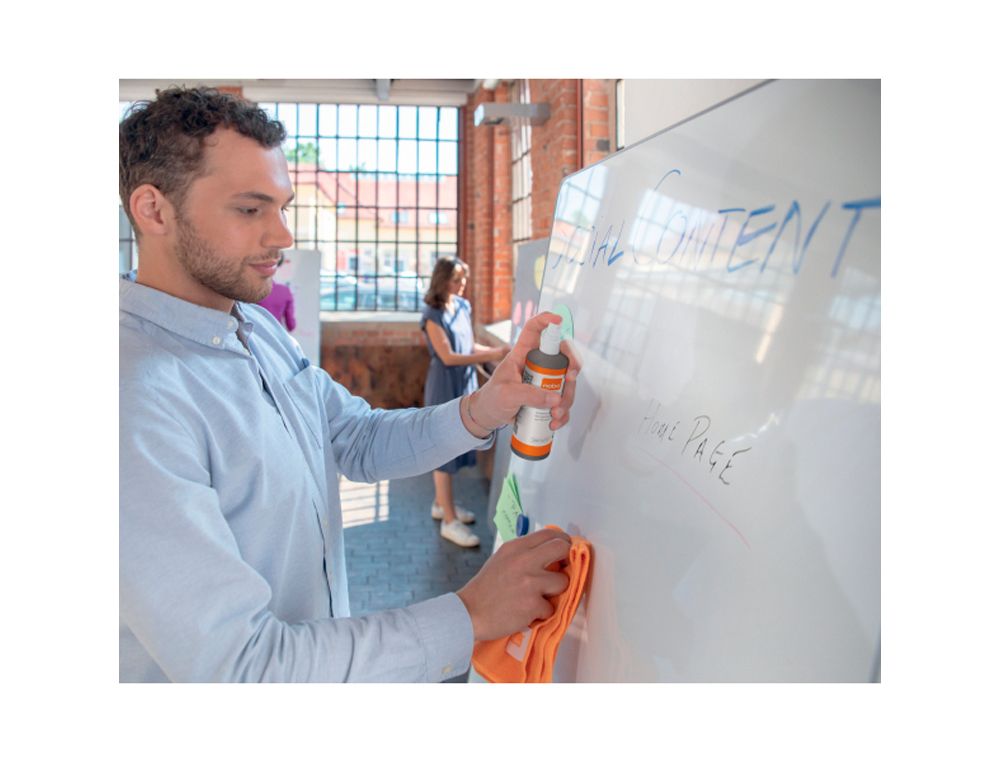 Este limpiador de pizarra es ideal para mantener tu pizarra en perfectas condiciones. El bote de 250 ml está hecho de plástico 100% reciclado preconsumo y contiene una fórmula a base de agua que es suave pero efectiva, eliminando sin esfuerzo los residuos de tinta de todas las superficies de pizarra borrable en seco. Ideal para el mantenimiento diario, este limpiador de pizarra de borrado en seco es perfecto para aulas, oficinas u oficinas en casa. Para obtener resultados óptimos, utilízalo con un borrador de pizarra nobo para mantener tu pizarra de borrado en seco funcionando al máximo. Bote de 250 ml. | Referencia Deskidea: 173361
