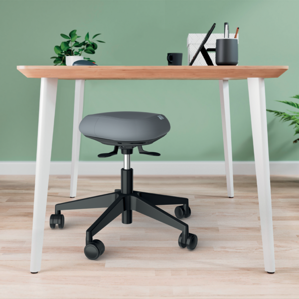 El taburete Leitz Ergo Active te ayuda a mantenerte con energía, cómodo y preparado para disfrutar de una jornada laboral activa con cada movimiento que realices Cuenta con un asiento triangular que se adapta al cuerpo como una silla de montar, ayudando a distribuir el peso de forma uniforme para mejorar la comodidad. El asiento está fabricado con una exclusiva espuma de doble densidad (DDF) de 9 cm de grosor. Esto significa que la espuma tiene dos capas: una capa interior firme para un apoyo fuerte y una capa exterior más blanda para mayor comodidad. Esta combinación te ayuda a mantener una buena postura y reduce la presión sobre las piernas, lo que facilita y hace más agradable permanecer sentado durante períodos más largos sin molestias. La suave inclinación del asiento con tecnología DSM 360° de movimiento dinámico de la columna vertebral (pendiente de patente) permite inclinarte en cualquier dirección, lo que favorece el movimiento natural y te anima a sentarte erguido y seguir moviéndote. Esto puede ayudar a mejorar la fuerza central y el equilibrio, reduciendo dolores y molestias. Probado y certificado por el Instituto Alemán de Salud y Ergonomía (IGR), este taburete ergonómico de altura regulable está diseñado para mantenerte cómodo y activo, ya sea en casa o en la oficina. La funda de tela del asiento está fabricada con material 100% reciclado. Dispone de 5 ruedas pivotantes aptas para todo tipo de suelos, diseñadas para girar 360° y facilitar el desplazamiento por el escritorio o de una habitación a otra. Las ruedas aumentan la resistencia cuando la silla está vacia, aumentando la seguridad y evitando movimientos involuntarios. Con una base más ancha de 60 cm, estos taburetes certificados por GS y TÜV (seguridad probada) ofrecen una mayor estabilidad, evitando el vuelco. Ajusta el taburete a tu altura perfecta (47 - 60 cm) con una de las 3 palancas de fácil acceso situadas debajo del taburete. Su diseño compacto y compacto permite guardarlo fácilmente debajo de un escritorio. Este taburete de asiento activo con ruedas y diseño moderno es ideal para mejorar la comodidad y maximizar la productividad, adaptándose perfectamente a muchos entornos. Nuestra misión es ofrecer soluciones que permitan a las personas prosperar en el trabajo y fuera de él, fomentando una salud mental y un bienestar físico positivos. Combínalo con otros productos Leitz Ergo para personalizar tu estación de trabajo flexible e individual sit, stand & move. Mantente activo, siéntete inspirado y disfruta de la comodidad en el trabajo y fuera de él, donde el diseño centrado en el ser humano se combina con la máxima calidad y la precisa ingeniería alemana. FEEL GOOD con Leitz.