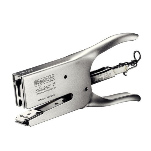 La tenaza K1 Platinum, con su acabado cromado mate, combina un diseño clásico y funcionalidad excepcional. Grapa hasta 50 hojas de papel, ideal para oficinas y uso doméstico. Sin huellas y con yunque ajustable, es la herramienta perfecta para todos tus proyectos. | Referencia Deskidea: ACC5000250