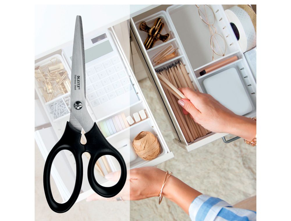 Tijera oficina leitz acero inoxidable 185 mm color negro