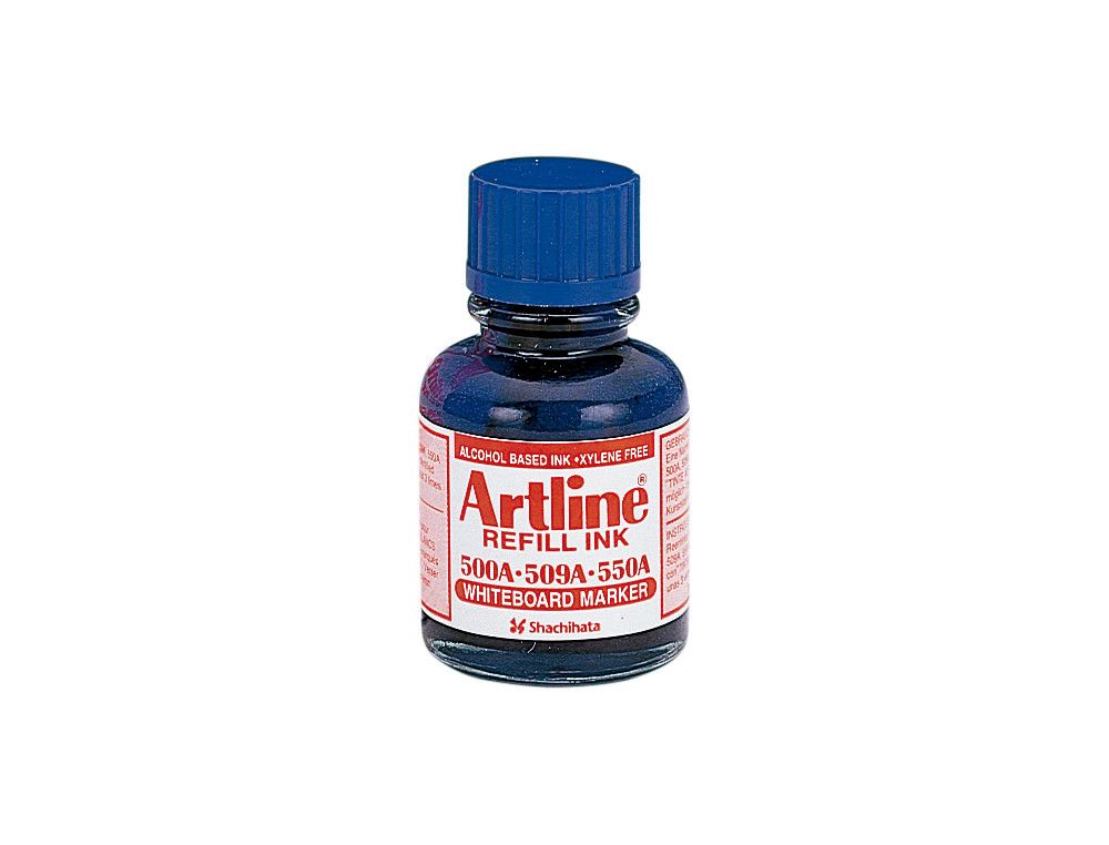 Restaura tus rotuladores pizarra blanca con la tinta Artline azul 500-A en un práctico frasco de 20 ml. Ideal para uso escolar o profesional, esta tinta garantiza un trazo intenso y duradero. ˇNo dejes que tus herramientas se queden sin tinta! | Referencia Deskidea: 42858