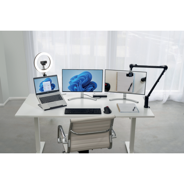 - Combinable: Mejora tu configuración con otros accesorios de Kensington como el soporte de escritorio o el anillo luminoso.